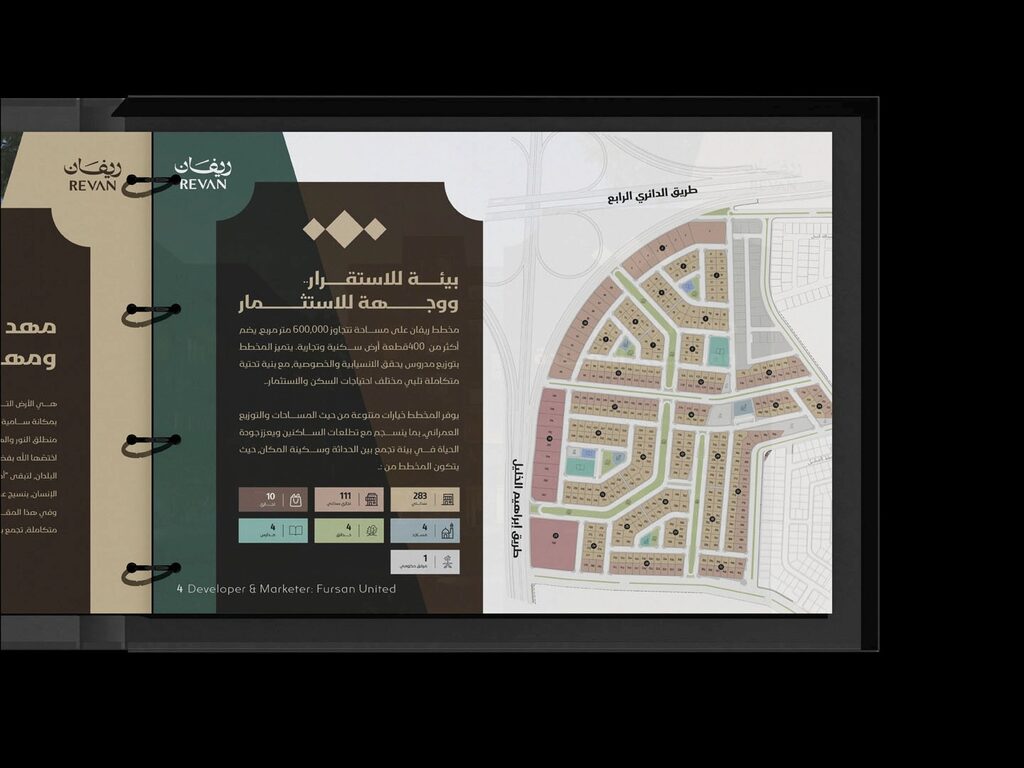 مكة المكرمة، أرض ذات مكانة فريدة، مشروع مخطط ريفان يمتد على أكثر من 600,000 متر مربع، ويضم أكثر من 400 قطعة أرض سكنية وتجارية، مع بنية تحتية متطورة توفر بيئة استثمارية متكاملة. قامت وكالتنا بتصميم الهوية البصرية والمواد البصرية للمشروع لتعكس تفرّده وتوازن بين روح المكان وحداثة التخطيط.